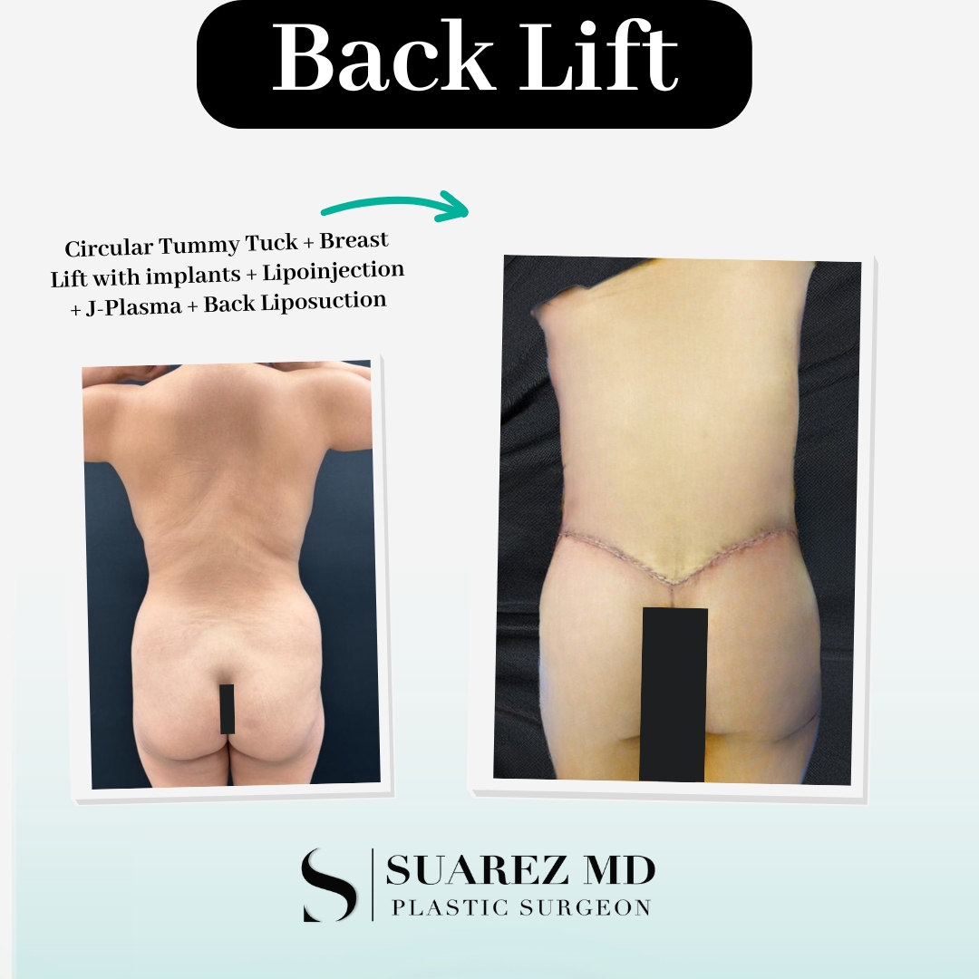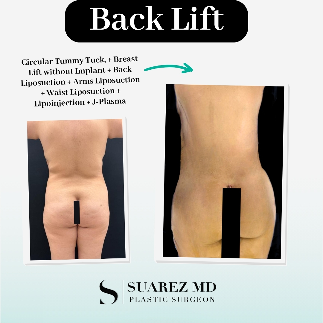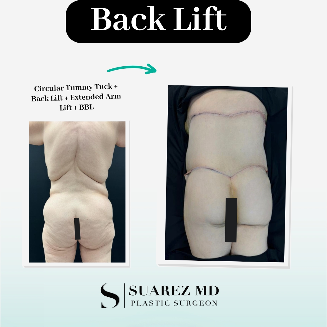 Also known as Upper Body Lift is a type of cosmetic surgery that helps remove sagging from the upper back. The sagging most typically affects the area of the back directly above or below a woman’s “bra line”. A common issue associated with aging and also weight loss, most patients after having weight loss surgery need this procedure. Unfortunately, it is not something that can be fixed with Liposuction or exercise the skin removal is necessary to have the desired results.